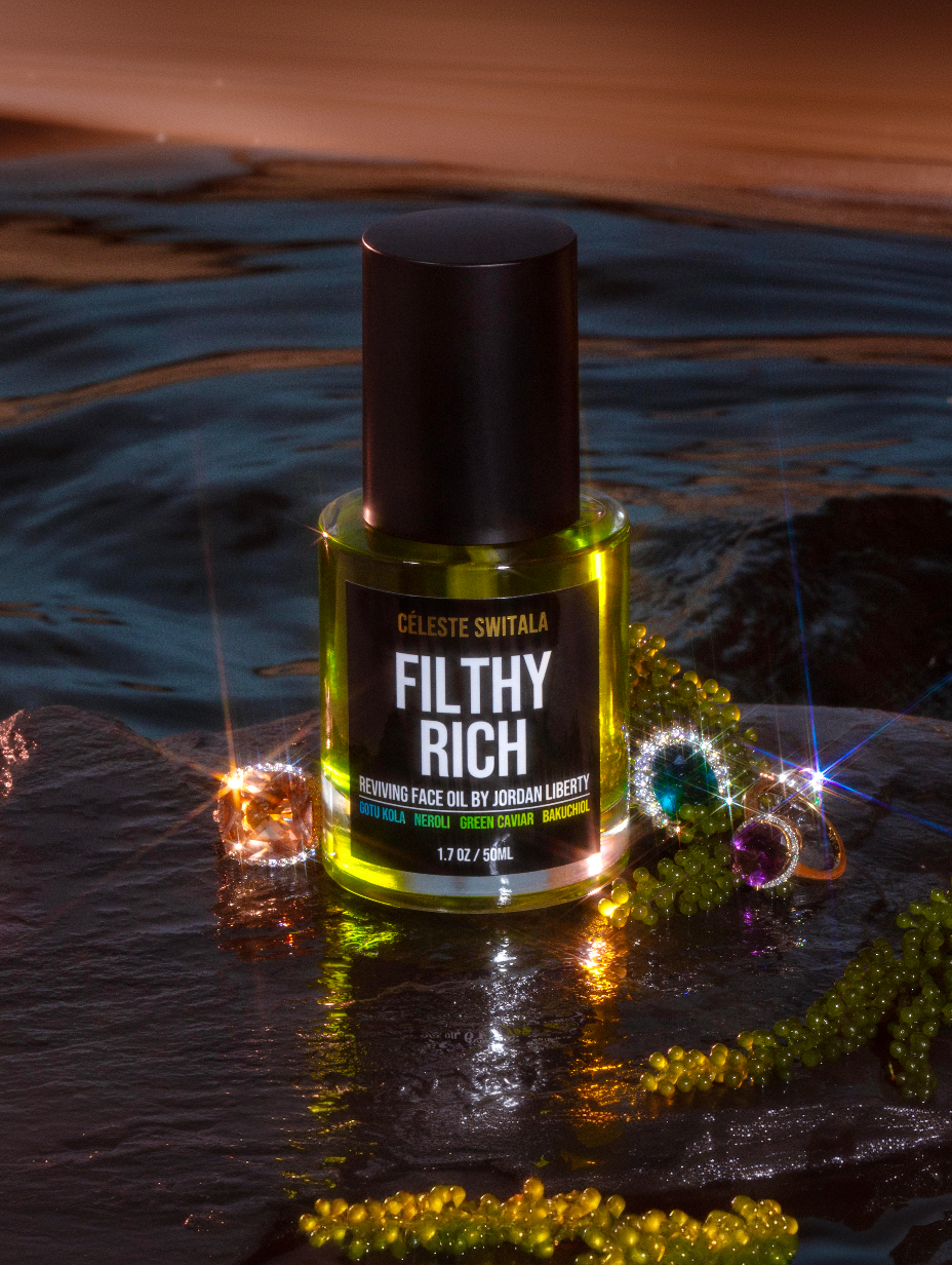 GENDERLESS AND SUITABLE FOR MOST SKIN TYPES, THIS LIGHTWEIGHT, NON-GREASY FORMULA ABSORBS QUICKLY AND LOCKS IN MOISTURE.FINISHED WITH THE DECADENT SCENT OF NEROLI AND SANDALWOOD, FILTHY RICH IS MORE THAN SKINCARE—IT’S A RITUAL IN RADIANCE.