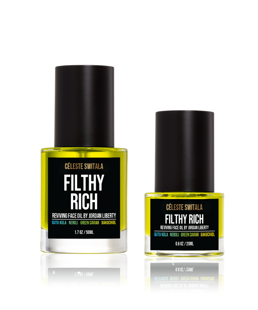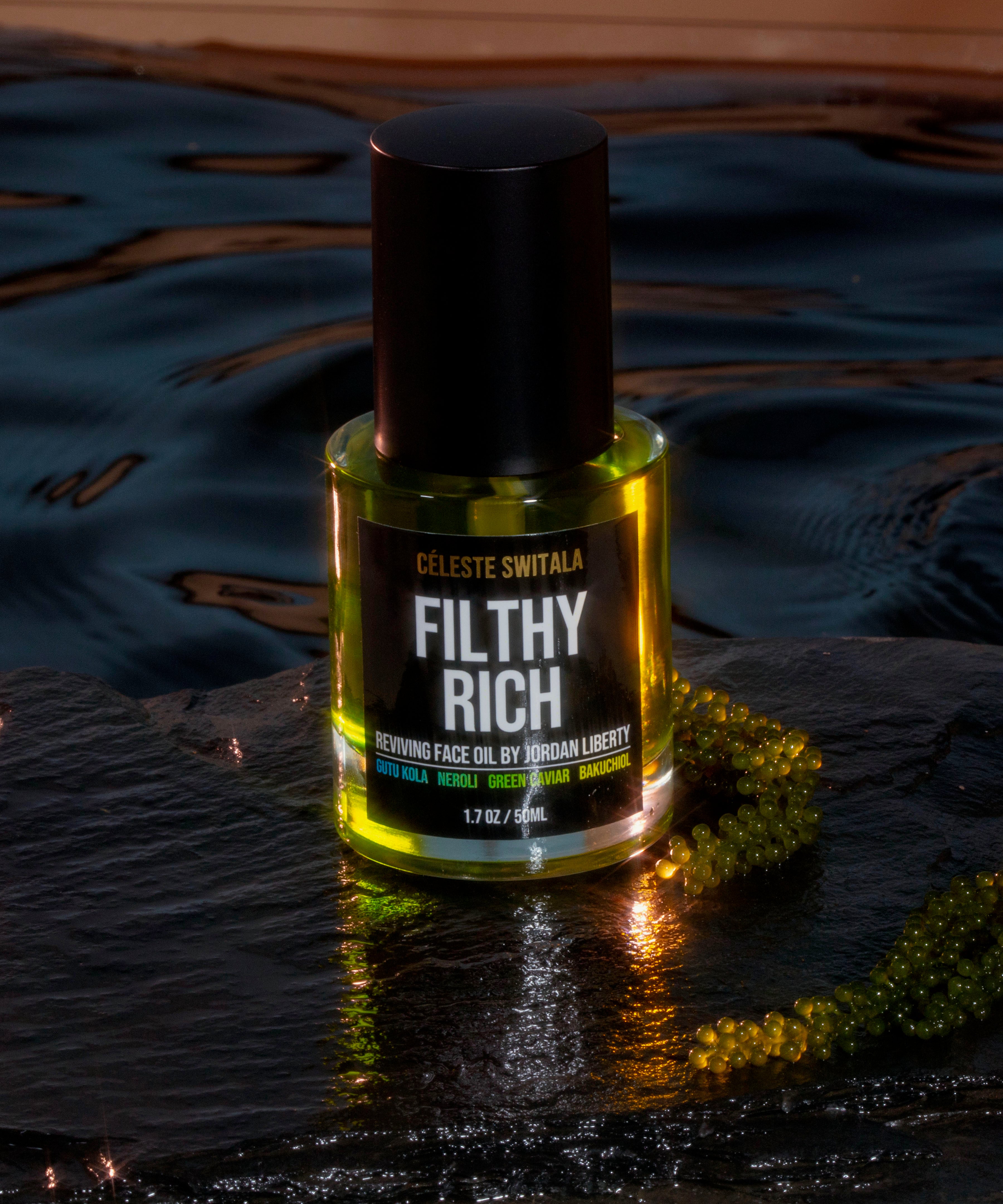 GENDERLESS AND SUITABLE FOR MOST SKIN TYPES, THIS LIGHTWEIGHT, NON-GREASY FORMULA ABSORBS QUICKLY AND LOCKS IN MOISTURE.FINISHED WITH THE DECADENT SCENT OF NEROLI AND SANDALWOOD, FILTHY RICH IS MORE THAN SKINCARE—IT’S A RITUAL IN RADIANCE.