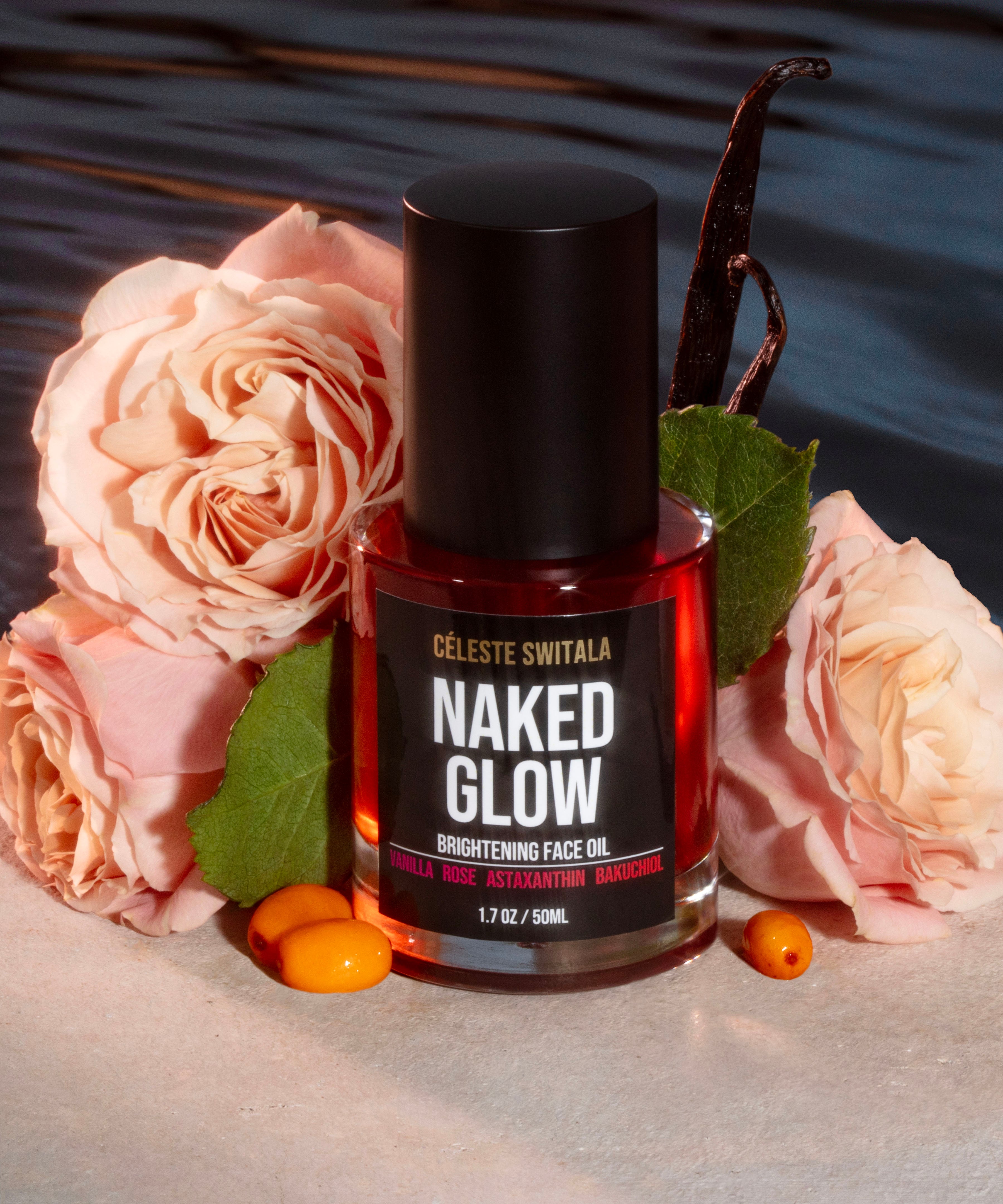 FINISHED WITH A SENSUAL BLEND OF VANILLA, ROSE DE MAI, BERGAMOT, JASMINE AND YLANG YLANG, NAKED GLOW IS MORE THAN SKINCARE-IT'S A RITUAL IN PLEASURE.
