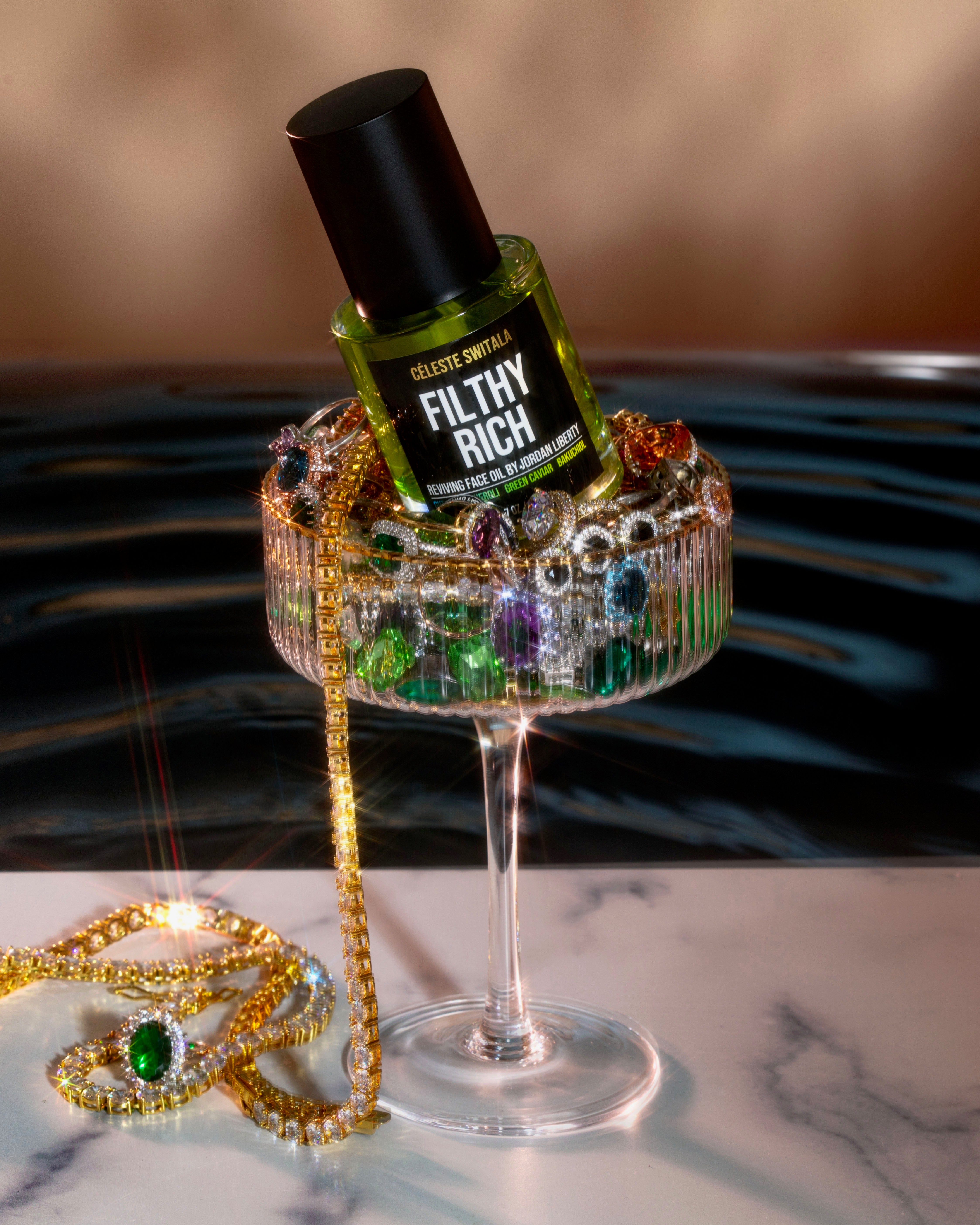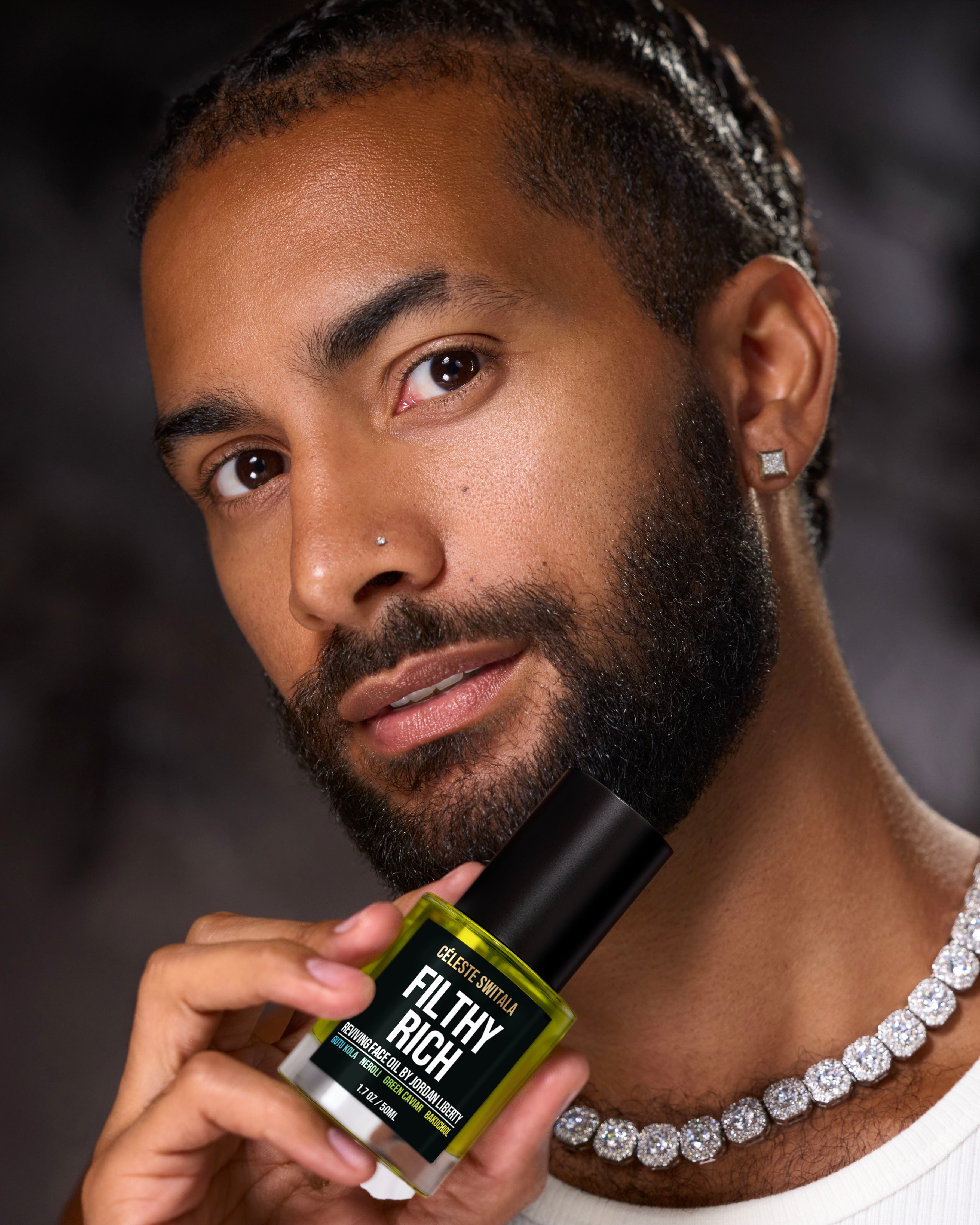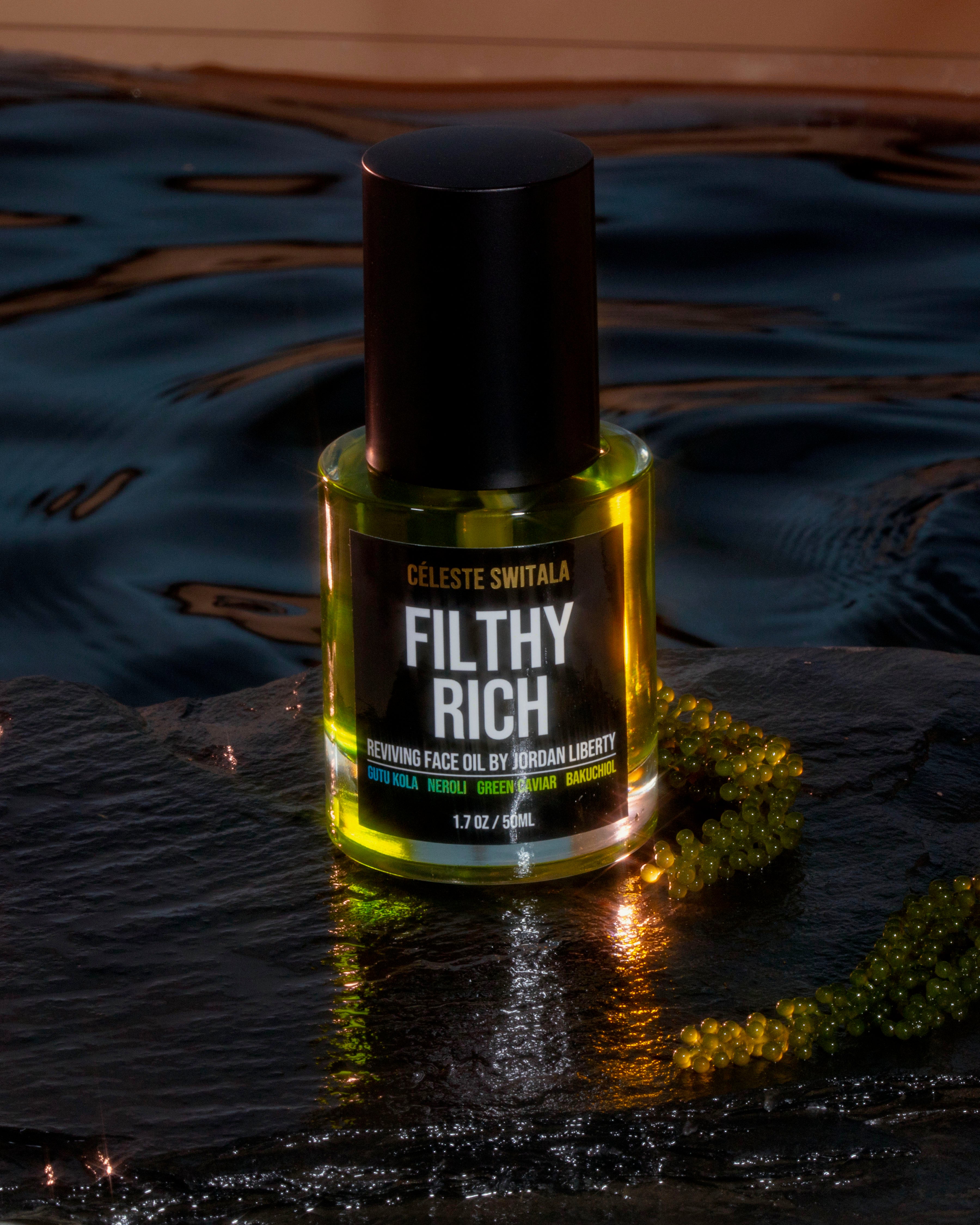 FINISHED WITH THE DECADENT SCENT OF NEROLI AND SANDALWOOD, FILTHY RICH IS MORE THAN SKINCARE—IT’S A RITUAL IN RADIANCE. FILTHY IN NAME. RICH IN NUTRIENTS RESULTS. WEAR IT AS YOUR FINAL SKINCARE STEP OR AS A SILKY-SMOOTH PRIMER BEFORE MAKEUP.